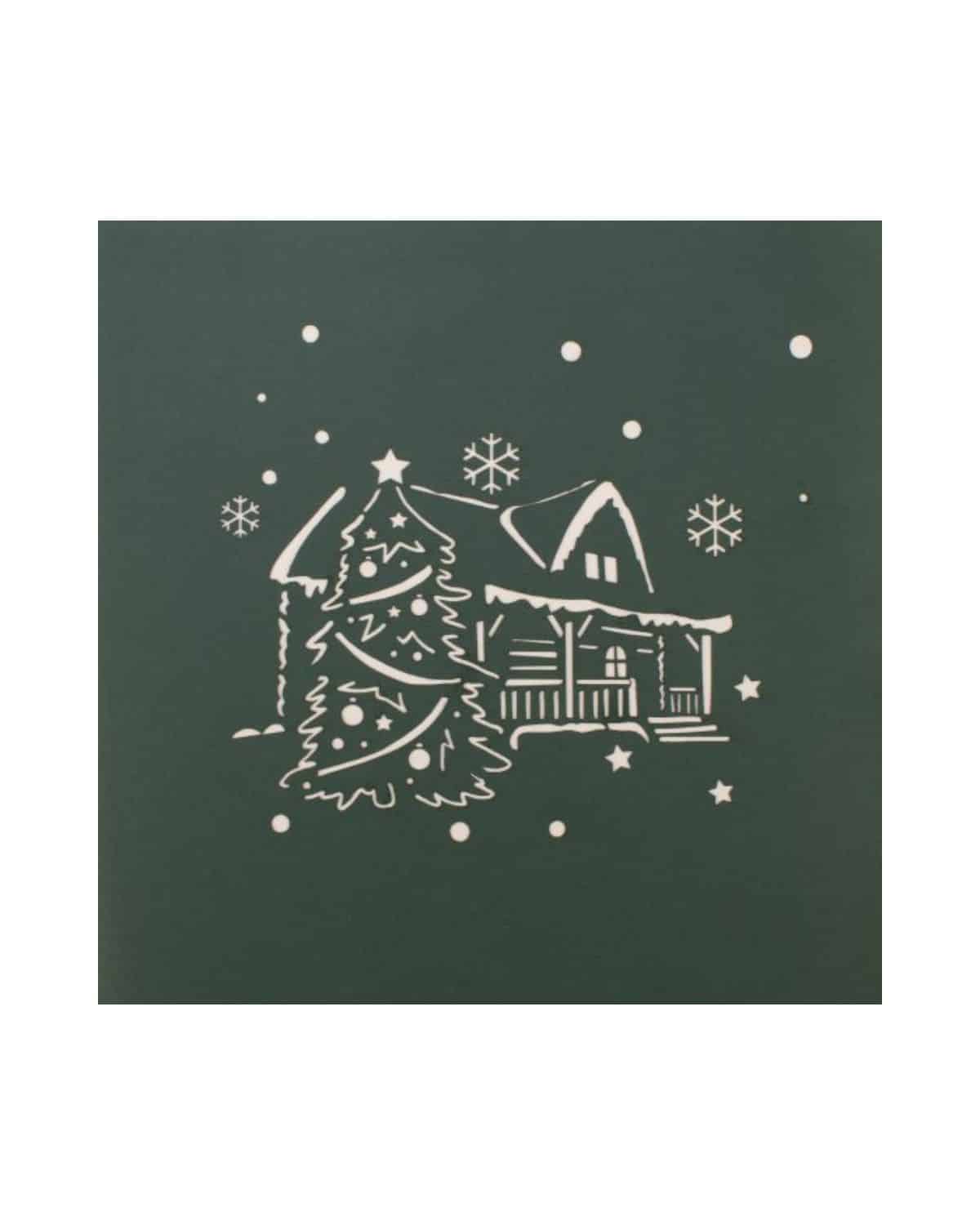 Con il suo formato quadrato da 15 × 15 cm, questo biglietto si apre rivelando una splendida scena tridimensionale natalizia, realizzata con cura e precisione. È un augurio che diventa decorazione, un pensiero che resta e che viene conservato come ricordo delle feste.