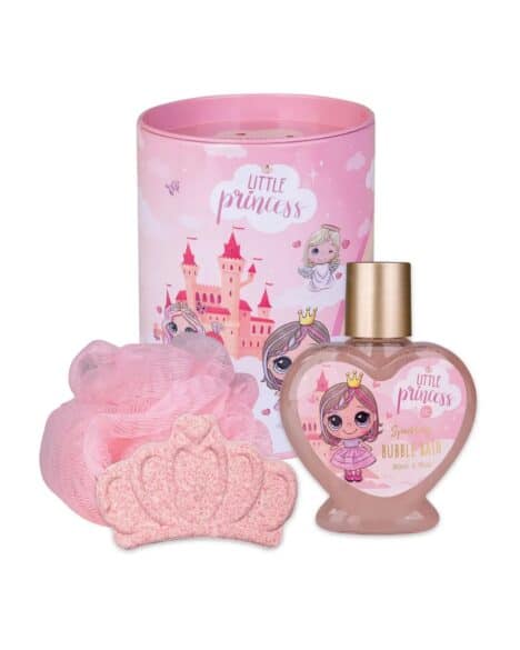 Set da bagno LITTLE PRINCESS in scatola salvadanaio, incl. 80ml di bagnoschiuma, 50g di macchia da bagno, 10g di spugna netta, fragranza: Strawberry Cheesecake, colore: rosa/bianco/oro, confezione da 6/24