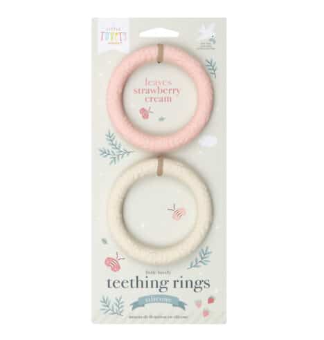 Set di due simpatici anelli da dentizione. Gli anelli per la dentizione in silicone al 100% sono di dimensioni perfette per le piccole mani e leniscono le gengive doloranti. Sono stati progettati con grande attenzione ai dettagli e soddisfano gli standard di salute e sicurezza. Gli anelli da dentizione in silicone non contengono sostanze nocive come PVC, BPA, ftalati o nitrosammine.