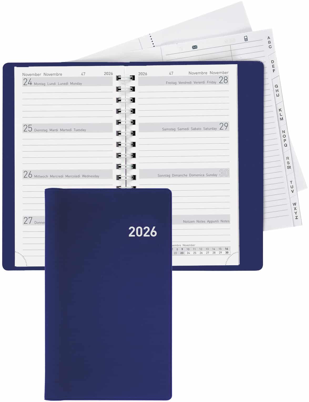BIELLA Agenda Bruxelles Wire-O 2026 858773050026U 1S/2P blu ML 8.5×15.3cm