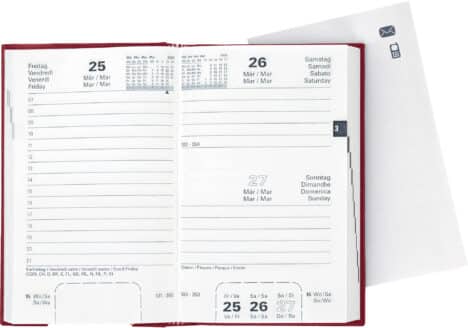 L'agenda business BIELLA è ideale per l'uso quotidiano. L'agenda business con 1 giorno per pagina garantisce un ampio spazio per la pianificazione e, grazie alla suddivisione oraria, un'ottima organizzazione.