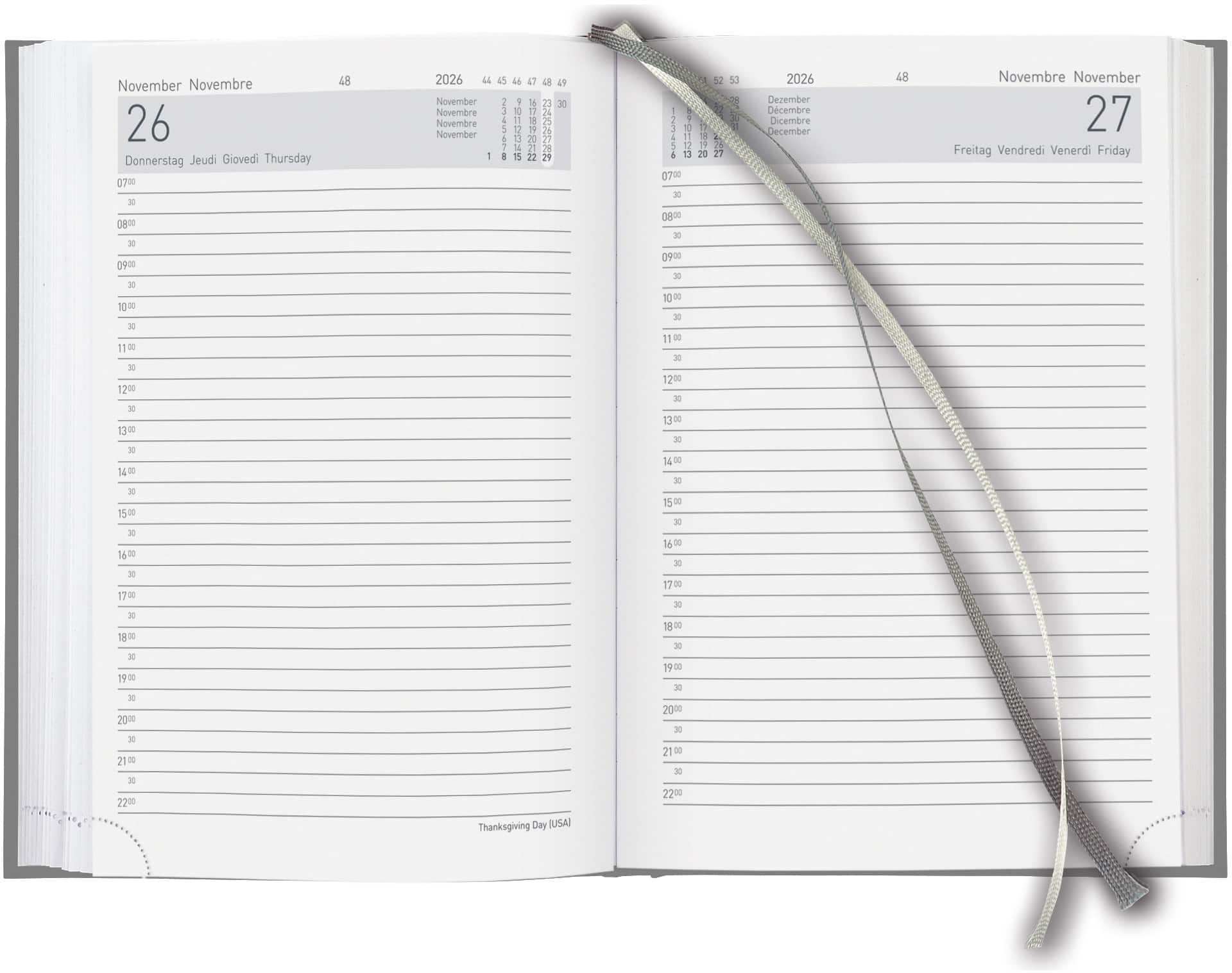 L'agenda business Biella è ideale per l'uso quotidiano. La nostra agenda business con 1 giorno per pagina vi garantisce ampio spazio per la pianificazione e un'ottima organizzazione grazie alla suddivisione in ore.