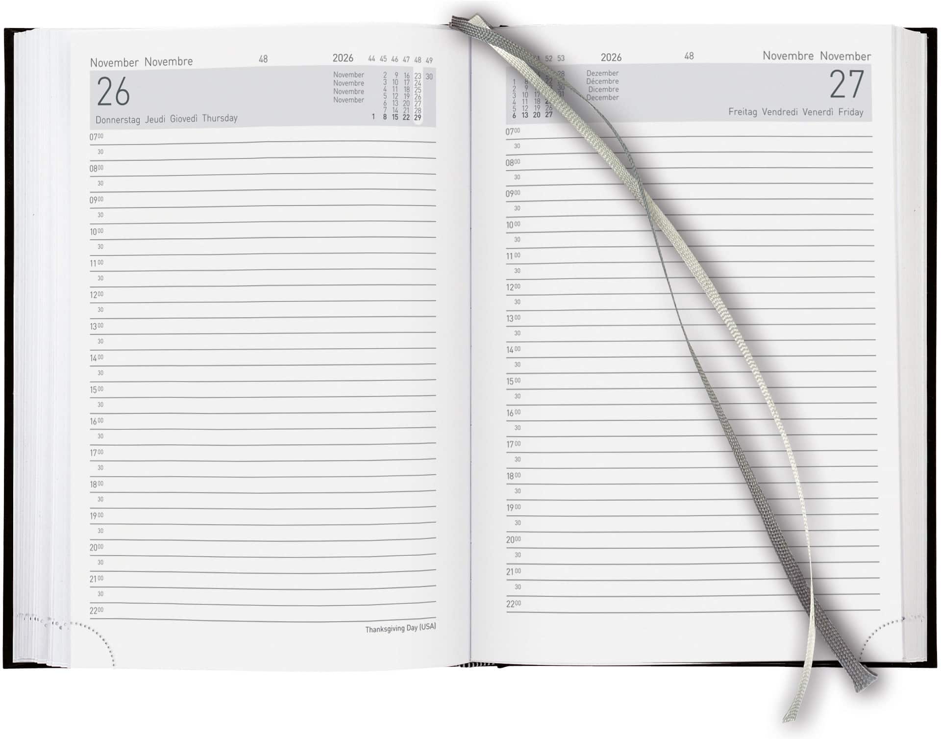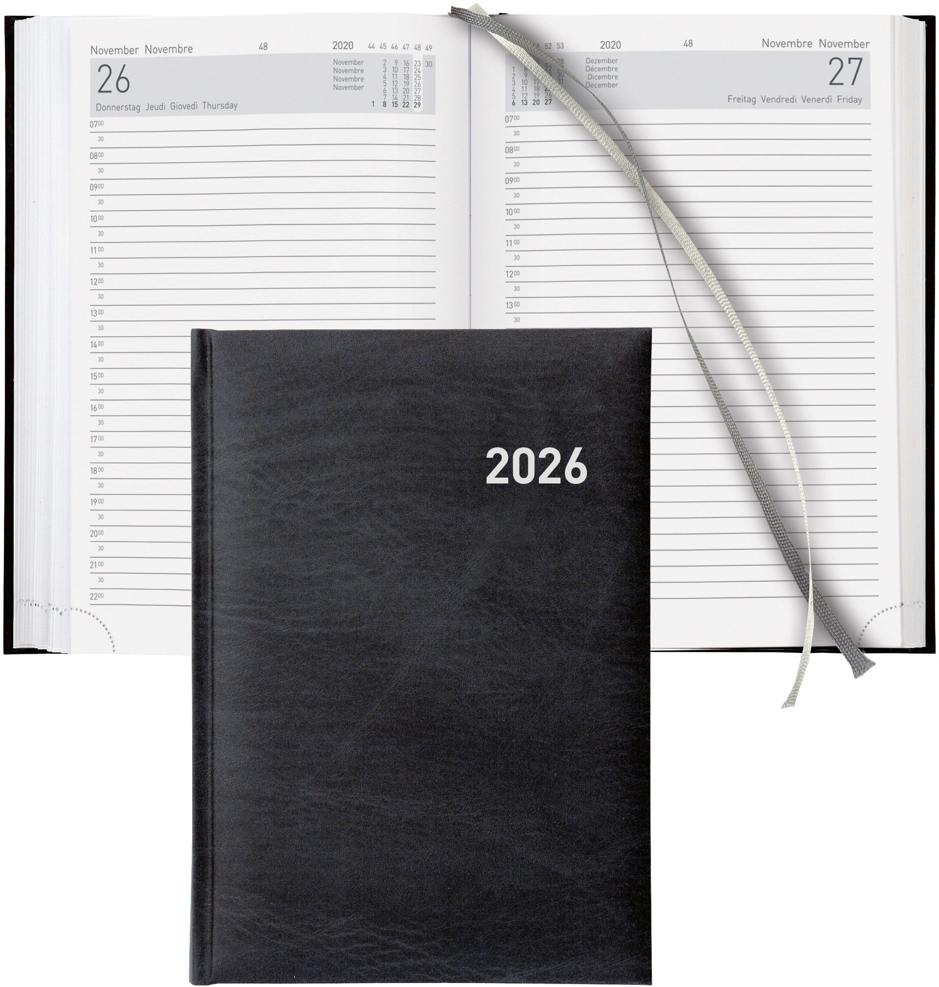 L'agenda business BIELLA è ideale per l'uso quotidiano. L'agenda business con 1 giorno per pagina garantisce ampio spazio per la pianificazione e un'ottima organizzazione grazie alla suddivisione oraria.