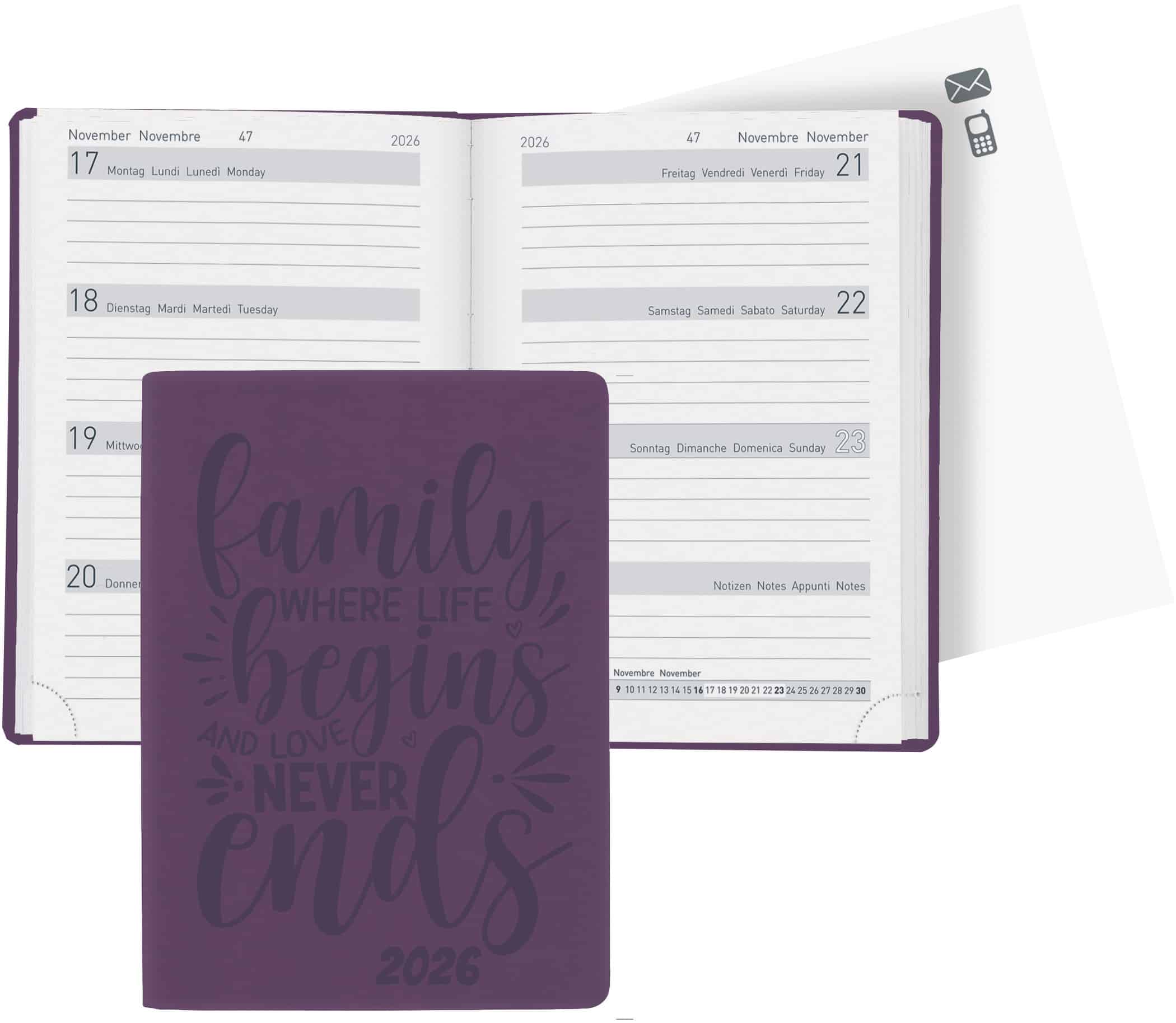 BIELLA Agenda Memento 2026 825715420026U 1S/2P violet ML 10.1×14.2cm