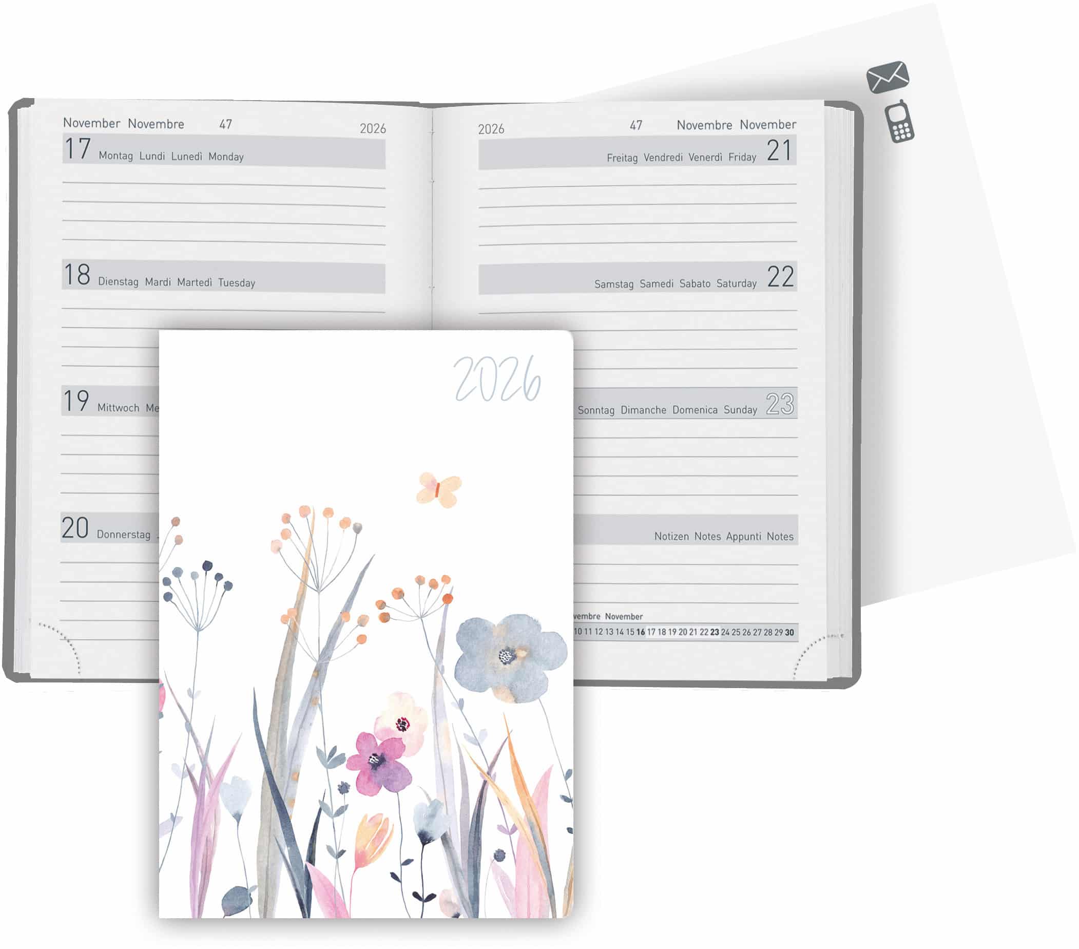 BIELLA Agenda Memento Trend 2026 825413790026U 1S/2P Wildflower 10.1×14.2cm