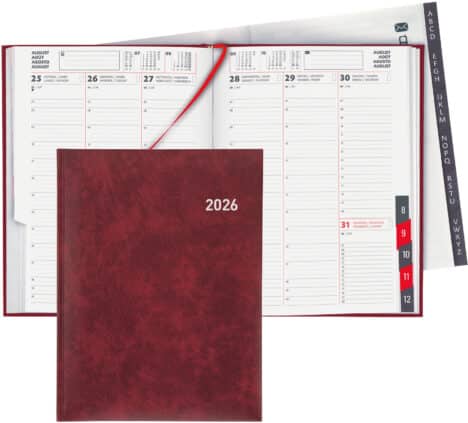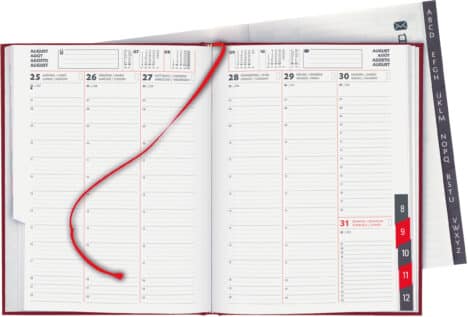 L'agenda business Biella è ideale per l'uso quotidiano. La nostra agenda business con 1 settimana su 2 pagine vi garantisce ampio spazio per la pianificazione e un'ottima organizzazione grazie alla suddivisione in ore.