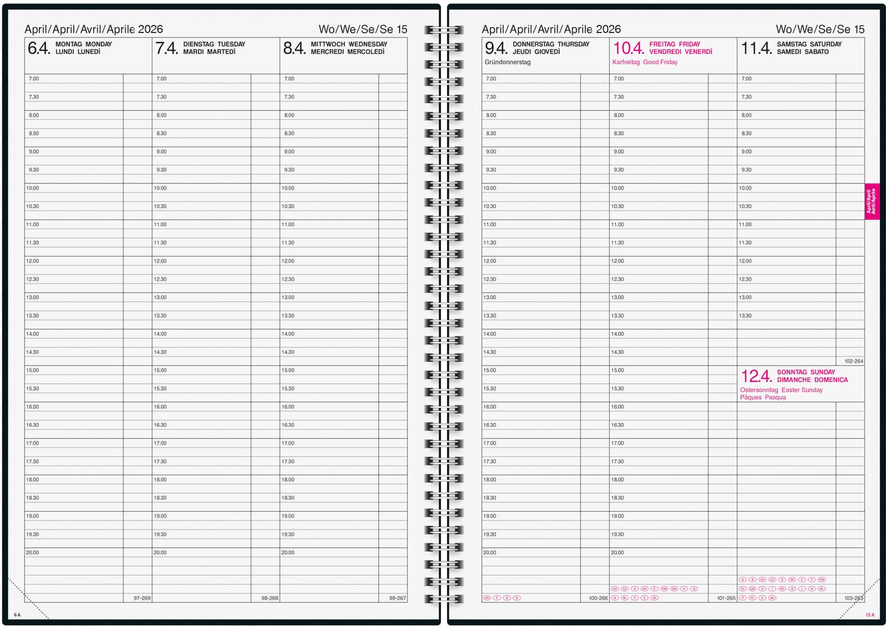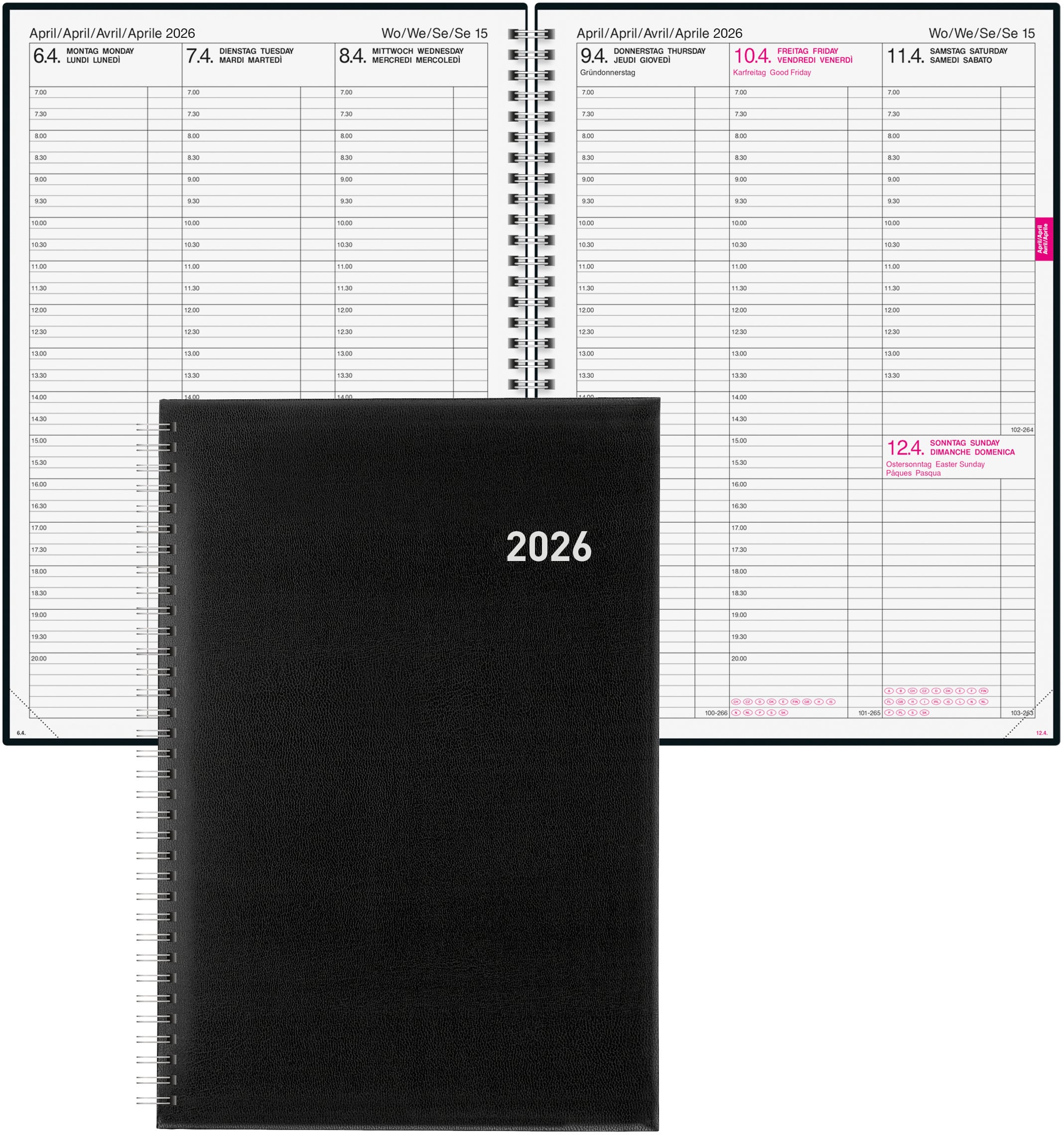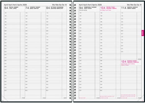 L'agenda aziendale è l'ideale per pianificare i minimi dettagli. L'agenda business con 1 settimana su 2 pagine e una suddivisione temporale predefinita garantisce un'organizzazione perfetta. Ideale per studi medici e utenti che desiderano inserire più appuntamenti al giorno.