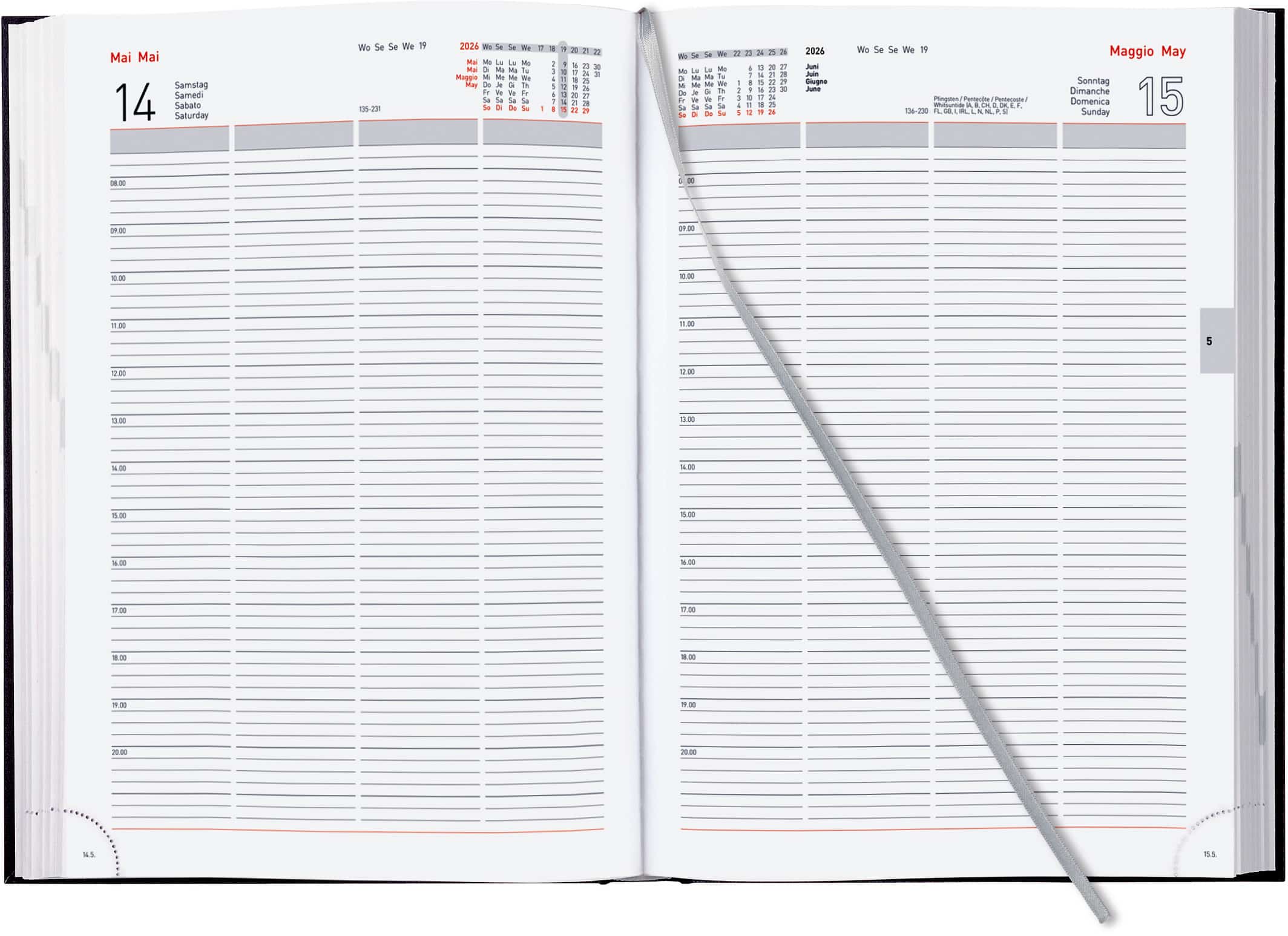 - Calendario d-f-i-gb, stampa grigio/rosso vino, divisione ore 08.00-20.00, 1 ora
