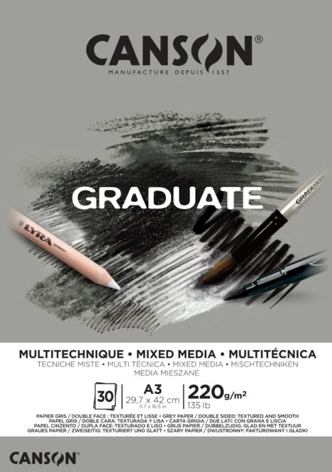 I blocchi Graduate Mixed Media, disponibili con carta bianca da 200 g/m?, carta colorata naturale da 220 g/m? o carta grigia da 220 g/m?, sono perfetti per la tecnica mista, gli schizzi con matita di grafite, acquerello o pennarello.