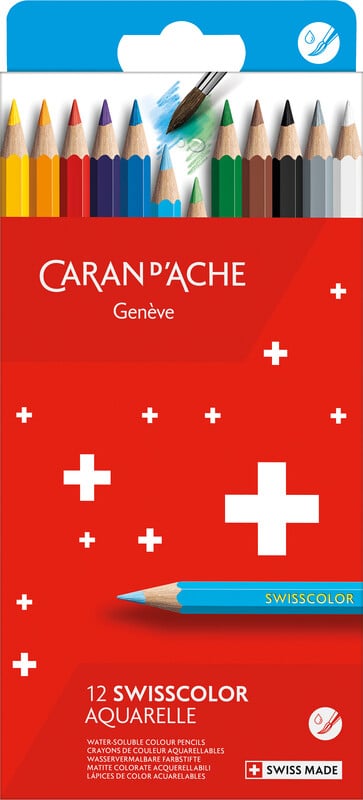 Queste matite acquerellabili nei colori della Svizzera sono un souvenir tipico, intramontabile e colorato.