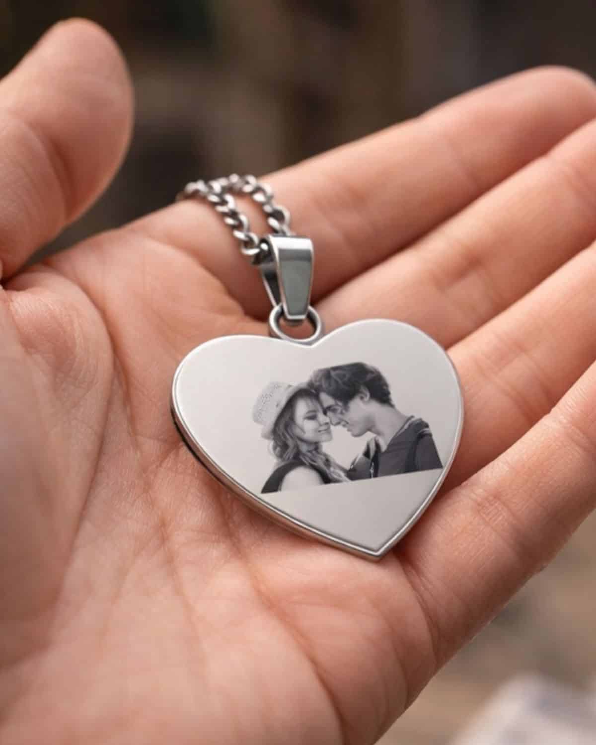 Il ciondolo a forma di cuore color argento รจ lโaccessorio perfetto per chi desidera un ricordo romantico, elegante e completamente personalizzato. Realizzato in acciaio inox argento, รจ resistente e allo stesso tempo estremamente femminile.