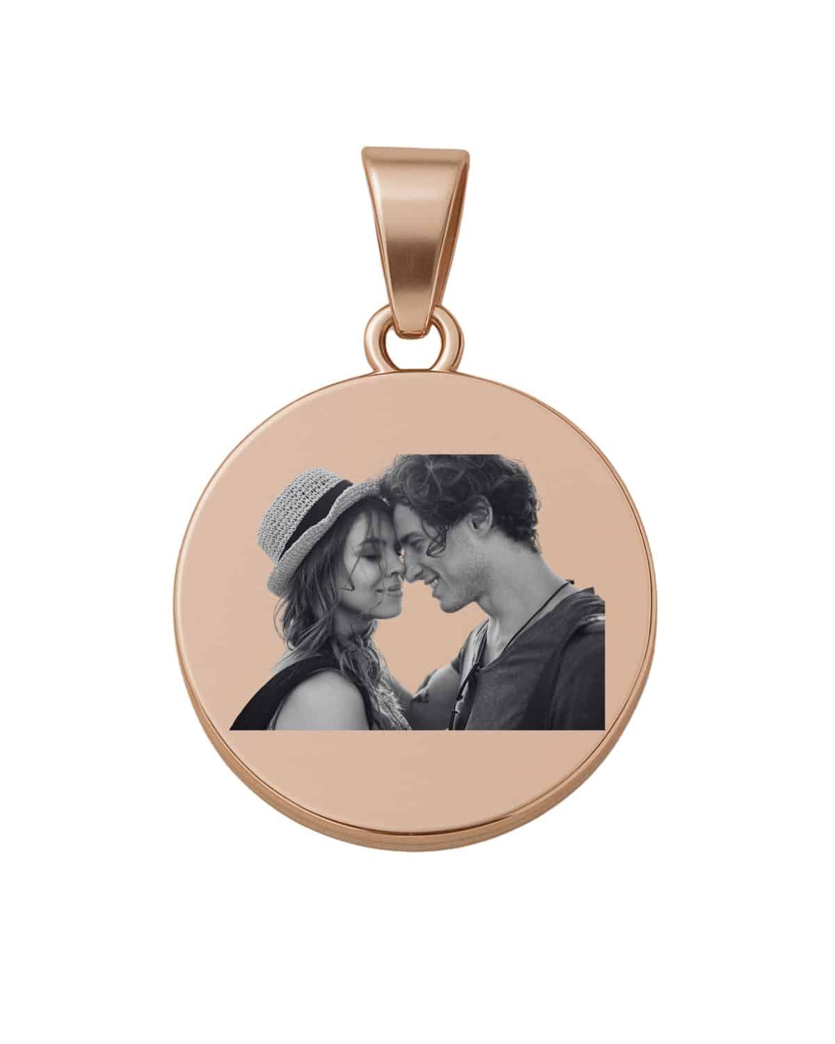 Il ciondolo rotondo in acciaio inox color rosa รจ l’accessorio perfetto per chi desidera un tocco di stile unito al valore della personalizzazione. La sua forma semplice ma raffinata lo rende ideale come regalo o ricordo personale.