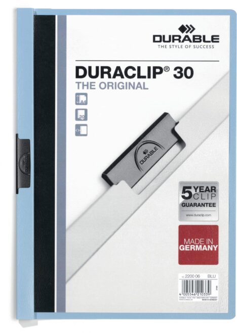 DURACLIP – l'originale: sviluppato da DURABLE, realizzato in pellicola resistente, con morsetto durevole in acciaio speciale. Per la presentazione, l'organizzazione e l'archiviazione di offerte, materiali per riunioni e formazione, relazioni e documenti.