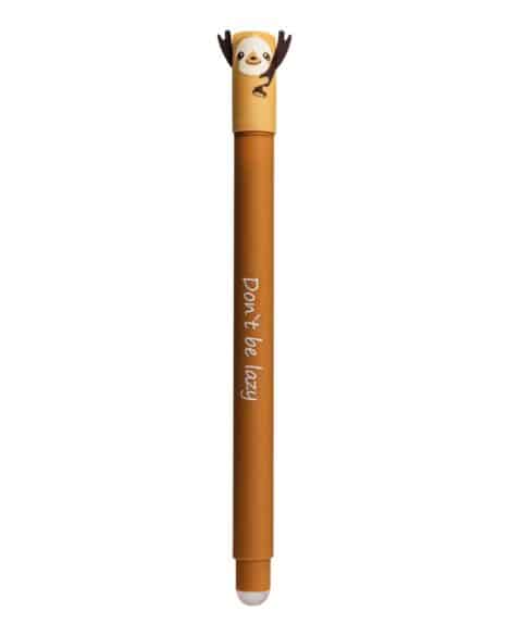 Animale Cancella! Penna gel a forma di bradipo. Le penne gel cancellabili Erase it! sono ideali per la scuola, l’università o l’ufficio. Le punte di plastica all’estremità del fusto o del cappuccio possono essere utilizzate per cancellare semplicemente la scrittura generando calore per attrito. La larghezza del tratto è di 0,7 mm. Le penne gel Erase it! sono ricaricabili e disponibili nei colori blu e nero. Animal Erase it! è un vero e proprio richiamo visivo in ogni situazione grazie ai suoi simpatici e diversi motivi animali.