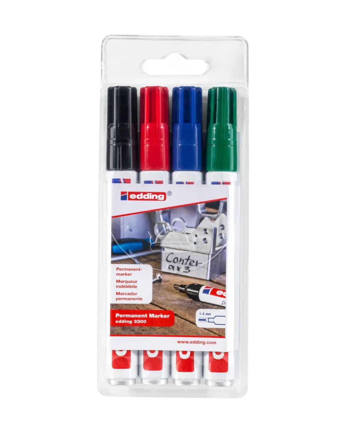EDDING Permanent Marker 3300 1-5mm 3300-E4 nero,rosso,blu,verde 4 pezzi
