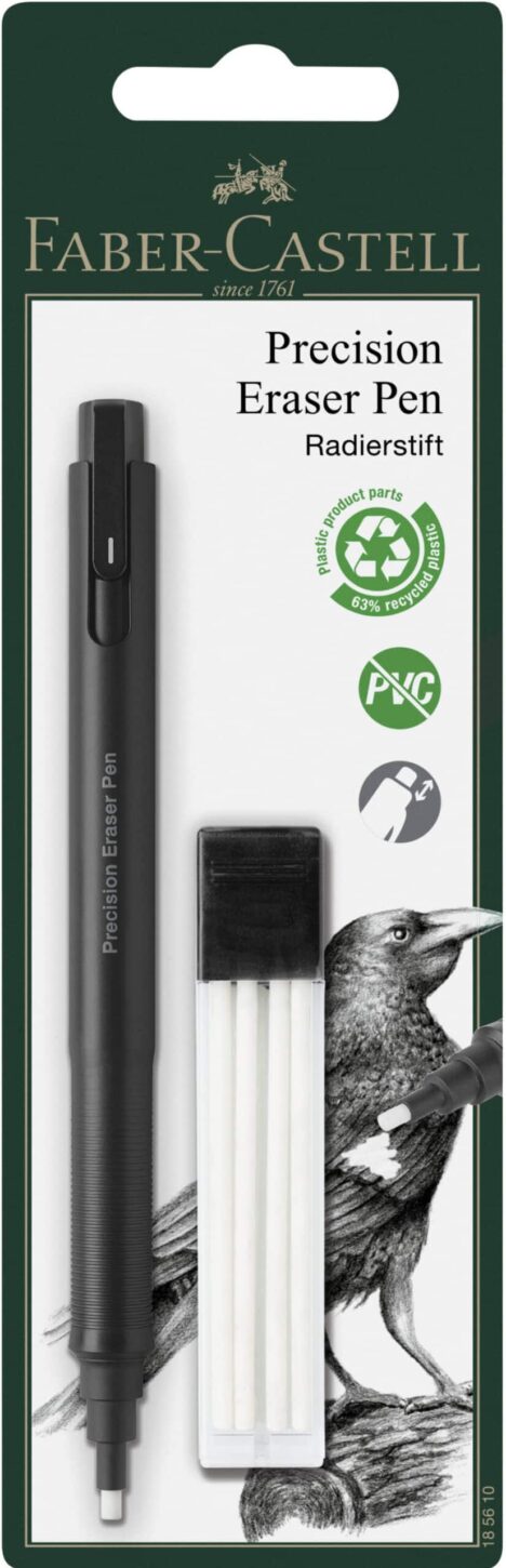La penna cancellatrice PRECISION ERASER, con meccanismo a pressione e punta in metallo, rimuove le linee di matite e matite colorate quasi senza residui. Cancella in modo preciso e accurato. Contenuto: 1 penna per cancellare + gomma di ricambio
