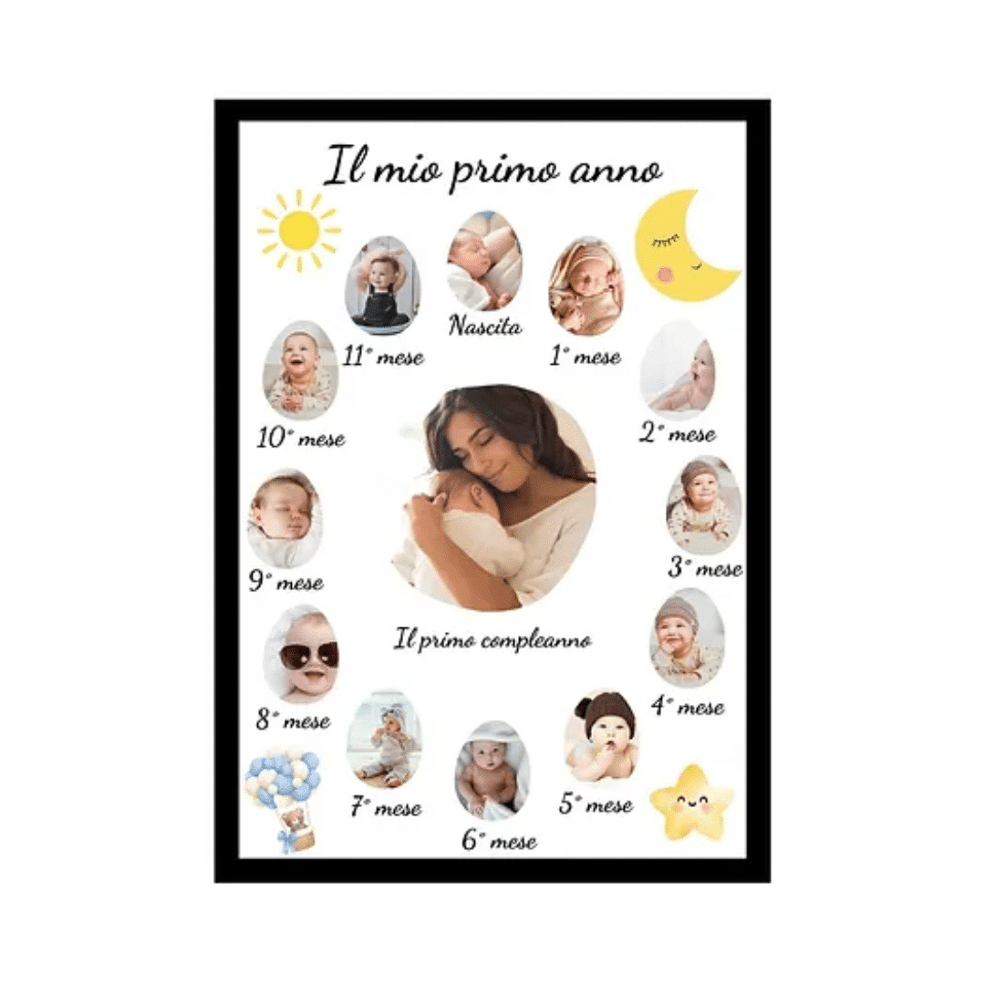 - Personalizzazione Completa: Uno degli aspetti piรน apprezzati di questo prodotto รจ la possibilitร di personalizzarlo completamente. Puoi caricare facilmente le foto piรน belle del tuo bambino, inserire il suo nome, data e ora di nascita, il peso, e qualsiasi altro dettaglio che desideri ricordare. I testi possono essere modificati e posizionati a seconda delle tue preferenze. Inoltre, puoi anche aggiungere citazioni speciali o dediche per rendere il poster ancora piรน personale.