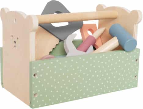 Il miglior regalo per il piccolo artigiano. La cassetta degli attrezzi contiene 15 pezzi e ha tutto ciò che serve al piccolo artigiano. Lasciate che la creatività e l'immaginazione dei bambini si scatenino. La cassetta degli attrezzi contiene: Cassetta degli attrezzi, chiave, sega, martello, cacciavite, chiodi, viti, dadi e blocchi.