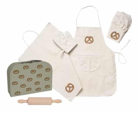 Ora puoi finalmente brillare in cucina come un vero piccolo chef. Con il nostro set da cucina da 4 pezzi, siete pronti a sedervi in cucina e a mostrare le vostre abilità. I vestiti da chef sono cuciti a mano con un simpatico pretzel e possono essere indossati per molti anni, incoraggiando il gioco creativo. <br><br>