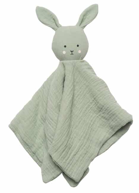 Coccole e coccole! La coperta coniglietto di Jabadabado è realizzata in morbidissimo tessuto di mussola di cotone in un bellissimo colore verde. Il coniglietto ha orecchie morbide e affettuose da sentire e annusare e diventerà un amico molto amato. La coperta del coniglietto diventa spesso la sicurezza del bambino che accompagna tutte le uscite e le avventure.
