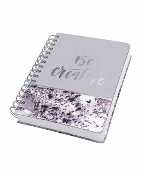 Dettagli: carta bianca, microperforazioni, rilegatura a spirale doppio pettine, apertura a 360°, copertina rigida, tasca interna posteriore, carta certificata FSC®.