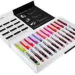 - Protezione e conservazione: Ogni pennarello è contenuto in un’esclusiva custodia che ne facilita l’uso e protegge i pennarelli stessi.