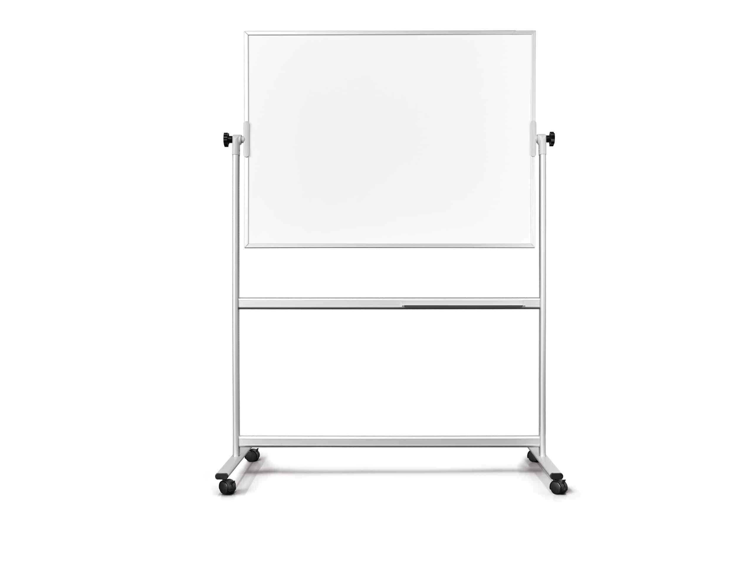 La lavagna mobile di alta qualità con struttura in alluminio anodizzato. Grazie agli angoli smussati, al design semplice e all'aspetto elegante, garantisce un utilizzo senza lesioni. Utilizzo flessibile per la comunicazione + informazione in ufficio + sala conferenze.