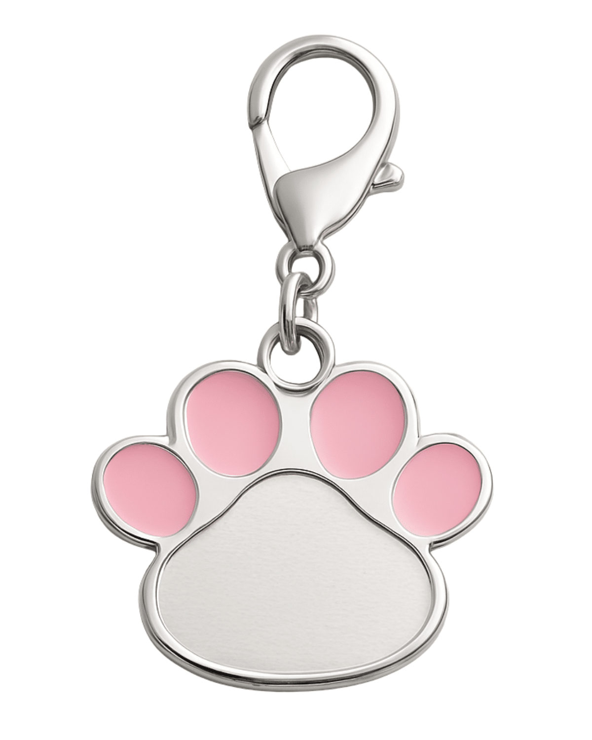 Il motivo a zampa rosa dona un tocco vivace e allegro, perfetto per chi ama distinguersi anche nei piccoli dettagli. Il gancio superiore permette di fissarla facilmente a qualsiasi collare, mantenendola sempre ben visibile.