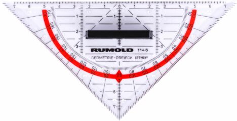 Il triangolo geometrico RUMOLD in plastica di alta qualità e l'impugnatura rimovibile aiutano a leggere facilmente e a disegnare con precisione in quasi tutte le situazioni. Il bordo dell'inchiostro impedisce all'inchiostro di scorrere sotto il supporto da disegno!
