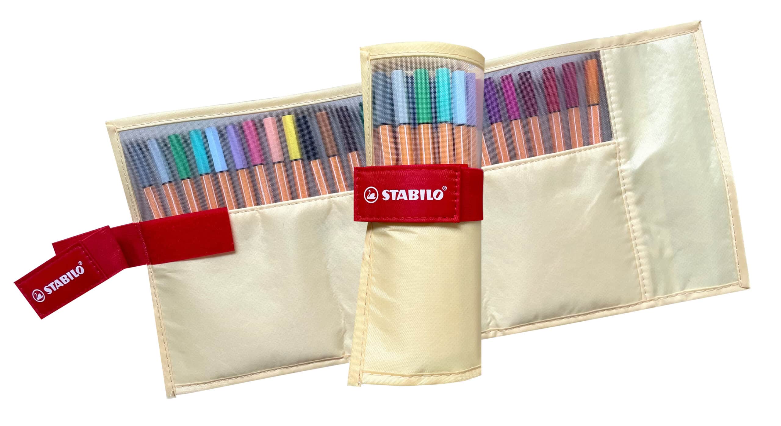 - Confezione e contenuto: set di 25 penne roller STABILO® point 88® fineliner in colori pastello di tendenza (CH edition), con retina trasparente, chiusura in velcro per facilitare l'apertura e la chiusura, tasca interna con chiusura a cerniera