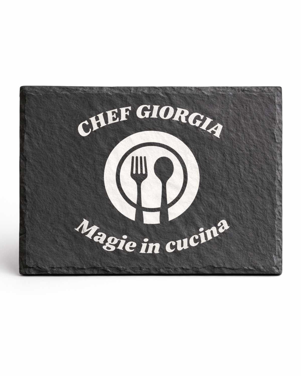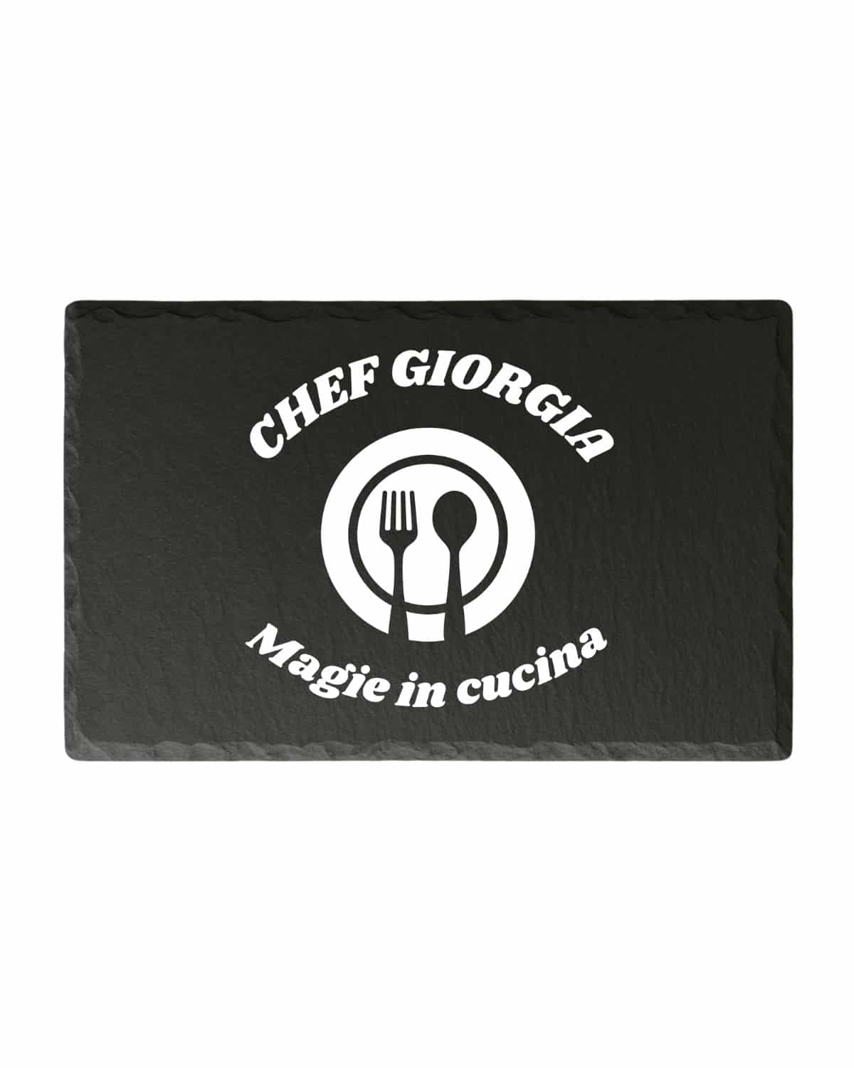 - Testo superiore personalizzabile, come “Chef Giorgia” o qualsiasi altro nome.