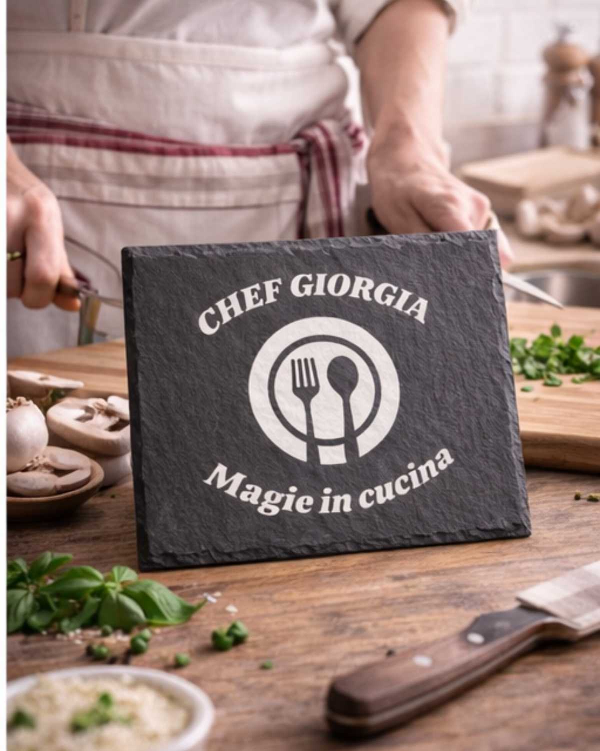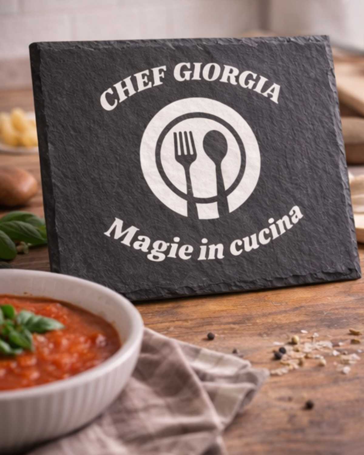 Tagliere in ardesia personalizzato – “Magie in cucina”