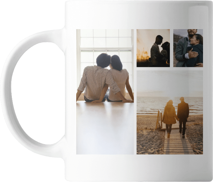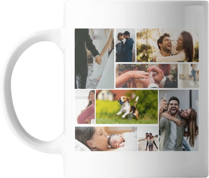 La Tazza personalizzata Collage รจ il regalo perfetto per chi vuole raccogliere ricordi preziosi in un oggetto quotidiano. Il cliente puรฒ scegliere tra diversi stili di collage (griglia, cuore, panoramico, ecc.) e caricare le foto preferite, che verranno stampate con qualitร fotografica su una resistente tazza in ceramica.